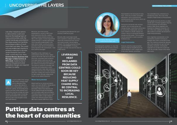 Like other industries before it , data centres could soon become the beating heart of many communities , with the market landscape potentially a few steps away from facilities becoming providers of much more than just data . This could not only enable each facility to achieve a reduction in its own carbon footprint , but of the wider community ’ s too . Here , Gemma Reeves , Business Unit Manager in Data Centres at Alfa Laval , explains how to achieve this goal and what legislative changes are required to make it a reality .