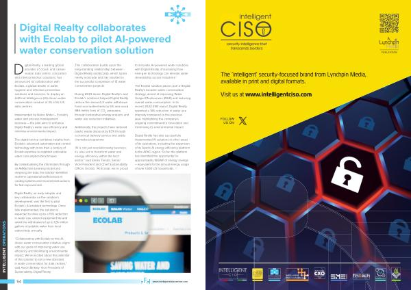 “ Collaborating with Ecolab on this AIdriven water conservation initiative aligns with our goals of improving water use efficiency and minimising environmental impact . We ’ re excited about the potential of this solution to set a new standard in water conservation for data centres ," said Aaron Binkley , Vice President of Sustainability , Digital Realty .