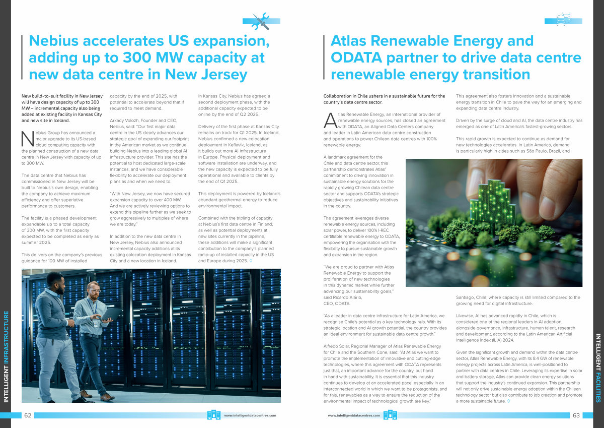 Atlas Renewable Energy, an international provider of renewable energy sources, has closed an agreement with ODATA, an Aligned Data Centers company and leader in Latin American data centre construction and operations to power Chilean data centres with 100 % renewable energy.