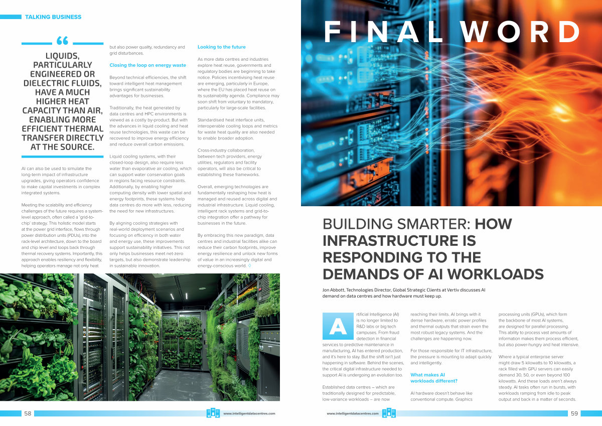 Meeting the scalability and efficiency challenges of the future requires a systemlevel approach, often called a‘ grid-tochip’ strategy. This holistic model starts at the power grid interface, flows through power distribution units( PDUs), into the rack-level architecture, down to the board and chip level and loops back through thermal recovery systems. Importantly, this approach enables resiliency and flexibility, helping operators manage not only heat but also power quality, redundancy and grid disturbances.