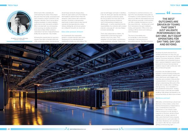 TECH TALK push to build bigger and faster is relentless. In the UK, where grid capacity and planning delays are already constraining supply, the race to deliver has never been more intense. But this pressure introduces risk. If commissioning is treated as an afterthought – or worse, absorbed into the responsibilities of a contractor with a vested interest in early sign-off – the risk of failure increases dramatically.
