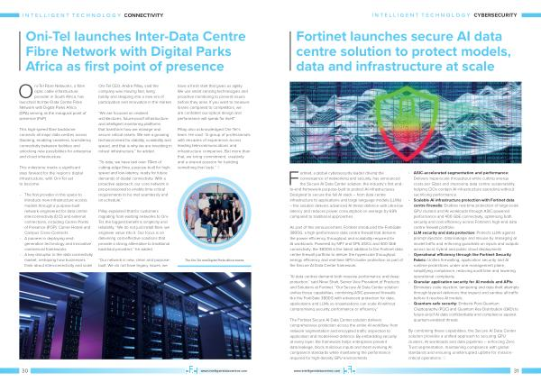 Fortinet, a global cybersecurity leader driving the convergence of networking and security, has announced the Secure AI Data Center solution, the industry’ s first endto-end framework purpose-built to protect AI infrastructures. Designed to secure the full AI stack – from data centre infrastructure to applications and large language models( LLMs) – the solution delivers advanced AI threat defence with ultra-low latency and reduces power consumption on average by 69 % compared to traditional approaches.
