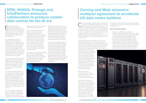 “ Building the most advanced data centres in the US requires world-class partners and American manufacturing,” said Joel Kaplan, Chief Global Affairs Officer at Meta.“ We’ re proud to partner with Corning – a company with deep expertise in optical connectivity and commitment to domestic manufacturing – for the highperformance fibre optic cables our AI infrastructure needs. This