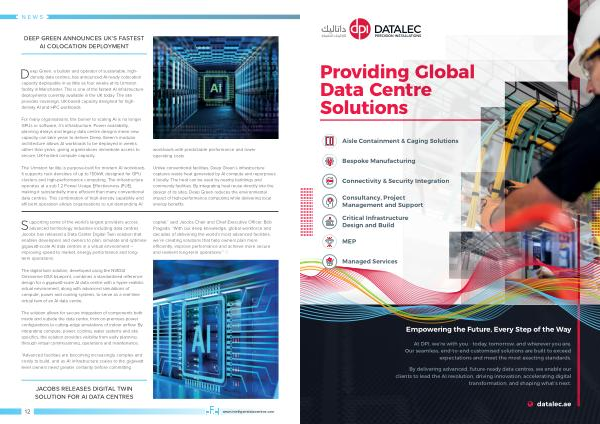 Deep Green, a builder and operator of sustainable, highdensity data centres, has announced AI-ready colocation capacity deployable in as little as four weeks at its Urmston facility in Manchester. This is one of the fastest AI infrastructure deployments currently available in the UK today. The site provides sovereign, UK-based capacity designed for highdensity AI and HPC workloads.